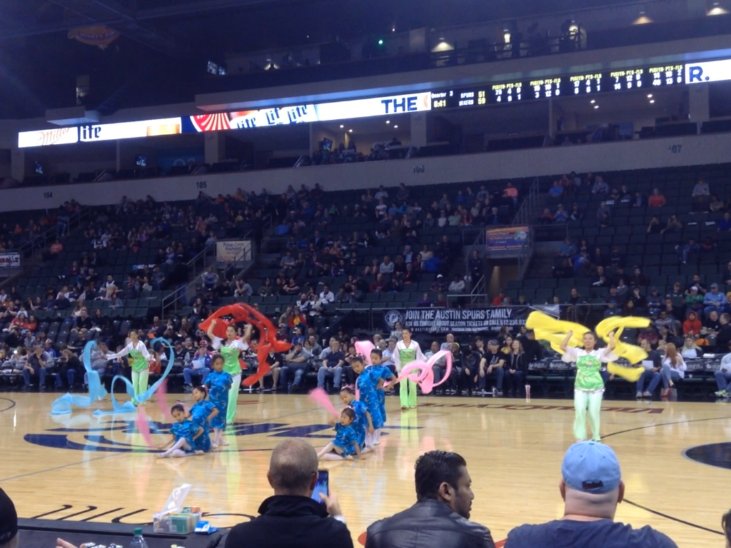 11月18日,中華之愛舞者兵分兩路,爲亞裔資源中心所舉辦的亞洲服裝秀,展現傳統服裝與現代服裝,同時由葉瑜慧校長親自率隊前往HEB Center 參加 Austin Spurs 職業籃球比賽的中場休息時段的演出,當中華之愛舞者上場時,全場一千多名觀眾熱情歡呼,由大小舞者ㄧ起演出別具特色的中華民族舞蹈,帶給德州牛仔們ㄧ大驚喜。演出結束時,掌聲雷動,讓大小舞者開心極了!