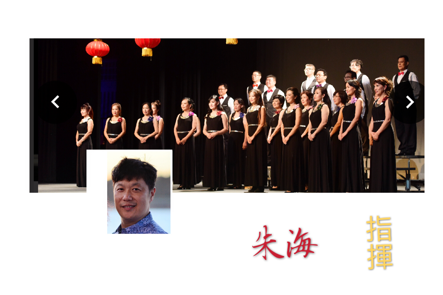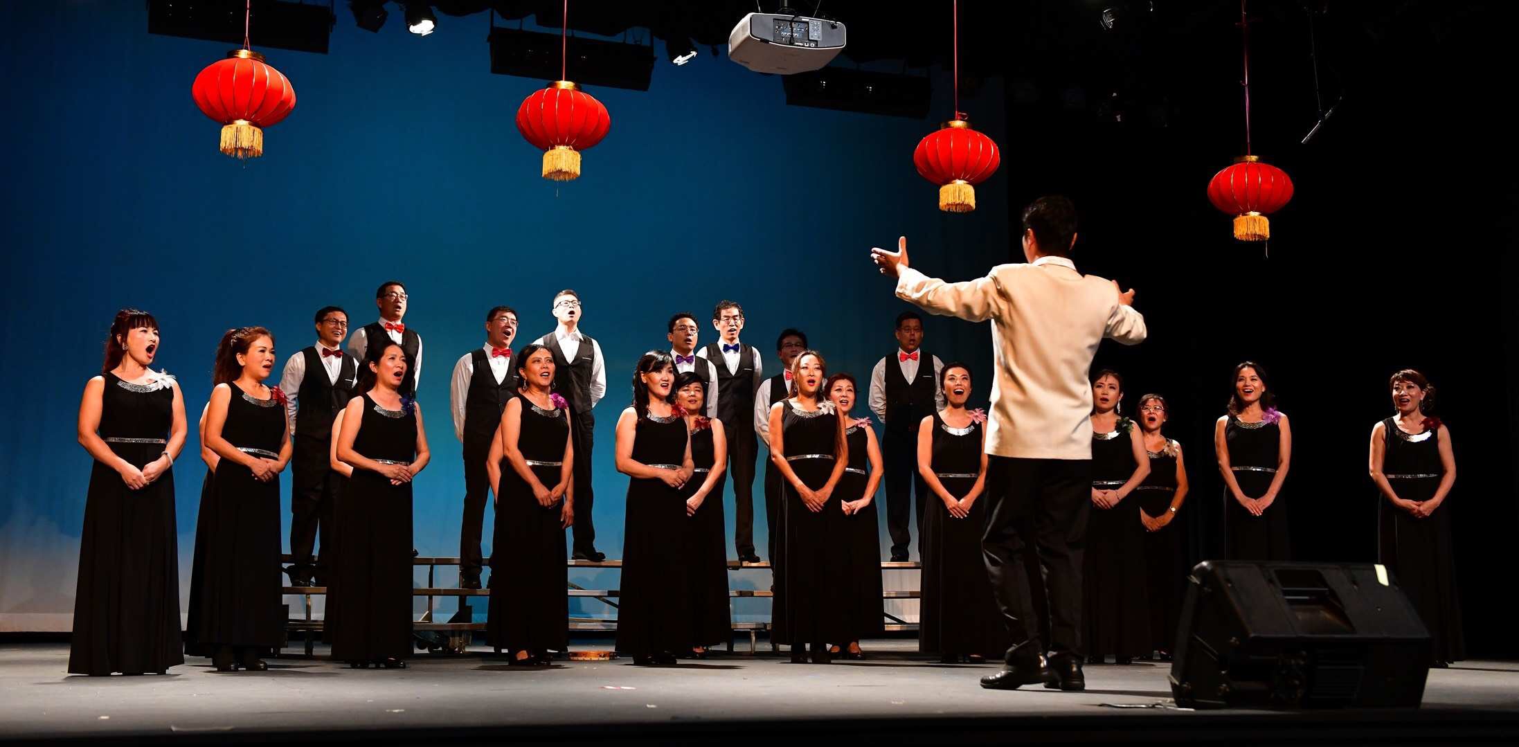 回想这数月,谁心里都清楚这一步步是怎么摸着石头趟过来的。没有场地,林碧把30多人分声部安排在自己家的客厅、卧室、及后院进行练习;华奥地产的老总袁琳知道后,主动把自己的公司开放给大家做训练场地;接着,华盟会长Peter和艺术团总监Darda又亲自搬来了数十把椅子,至此排练场地总算有着落了。合唱组经历选歌、读乐谱、练发音、分声部及合声练习,三个月后才渐入佳境。要知道此前绝大多数人从未尝试过无伴奏合唱,而其中没学过乐理知识的也大有人在。 没有乐器伴奏而是全靠不同声部的抑扬顿挫来控制和润色整个旋律,无疑,对没有经验的人来说是个极大的挑战!特别有幸地是,合唱团请到了具有丰富教学、指挥及表演经验的朱海老师担任指挥。朱老师不辞辛苦,每次驱车往返近2小时,在他的悉心指导、示范和不厌其烦的纠正下,逐句打磨,反复演练,从音准、音色、强弱、情感上调整四个声部的配搭,大家在一点点进步的同时,也在体验着无伴奏合唱的魅力。其间翁老师、美玲、崔文、寿春等都利用自己在声乐方面的天赋及学识,积极协助指挥,尽心辅导大家;各声部长如Tonya、新航等也是不遗余力地带领大家进行声部练习,并逐一把关;尽管工作、家庭诸事繁忙,大家都尽可能出席,李虹更是四个月来从未迟到和缺席过......这一切都为日后的成功奠定了基础。无伴奏合唱,要求四个声部配合默契,既要唱出各自不同,使整体听上去不致单调,又要围绕和烘托主旋律,的确有难度。合唱时若处理不好,声部之间会互相干扰,有时被主旋律带跑,有时又抢了主旋律的风头。表演前,朱海指挥为大家能否临场发挥正常捏着把汗,这毕竟是近30人首次合作推出的处女作,又是在舞台上,聚光灯下......直到上场前几分钟还在抓空练习再练习。