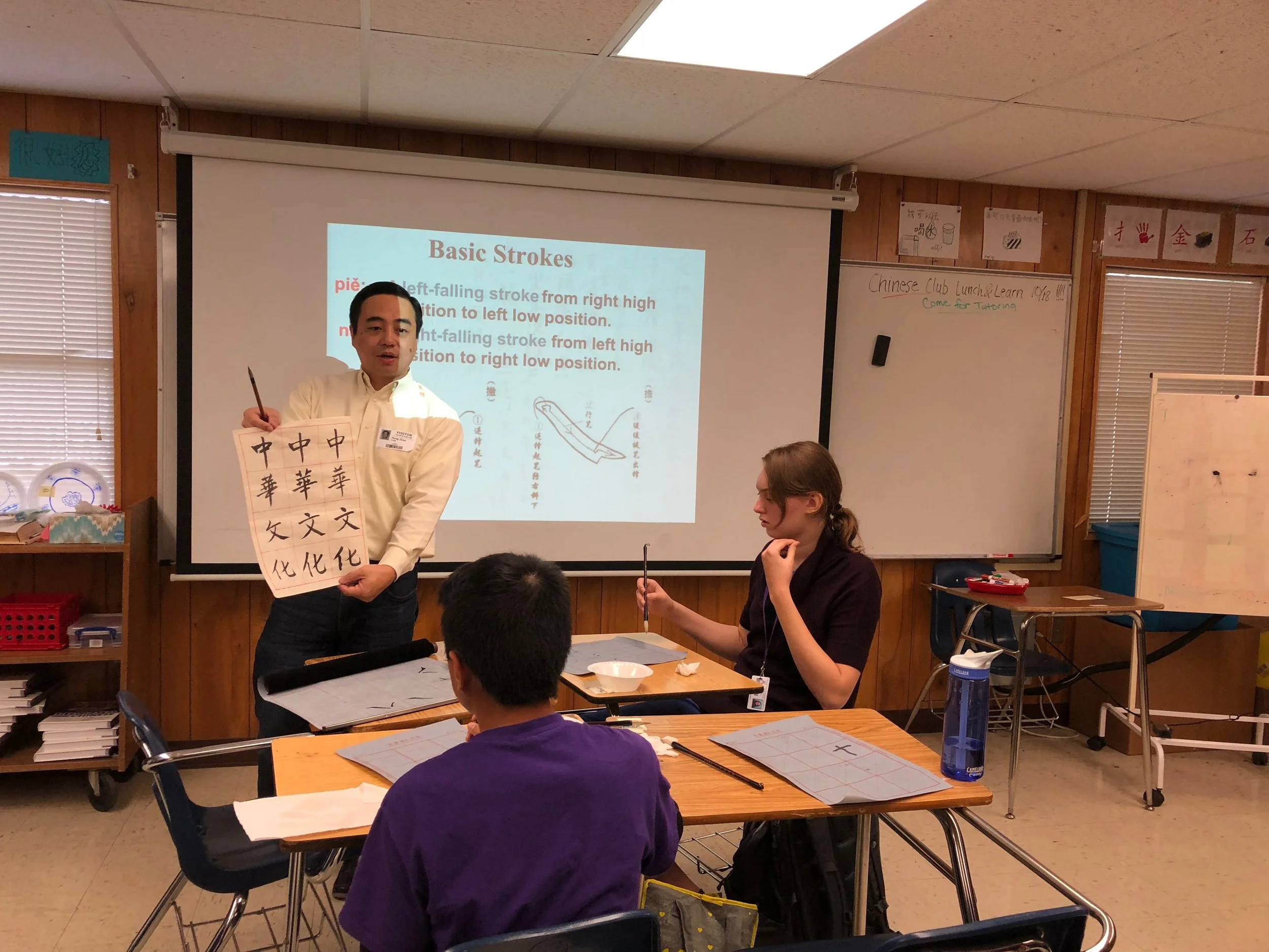 [中国书法]课也受到参与活动的十一所学校的中文教师的积极支持。负责Glenn 和Cedar Park 的Joyce Chen老师,Westwood 的王珏老师,LASA的锺老师, Dominic Savio Catholic 的曹艳丽老师,Round Rock 的胡梅老師,Canyon Vista 的Rachel Cruz老师,Cedar Ridge 的 唐宜玲老師,Westlake 的李婷婷老師,Vandegrift 的Angela Tsai 蔡老師,和Connally 的阿曼达Amanda Tse老师都积极配合[中国书法]的教学工作。