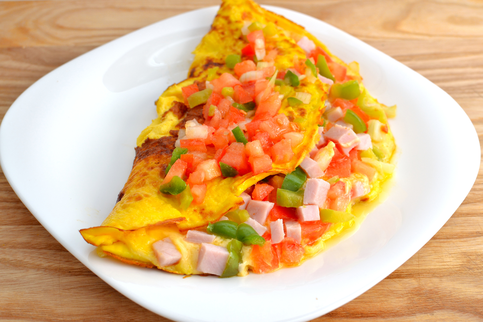 Omelet: 蛋饼,一般会包香肠、芝士、葱和番茄等配料一起。