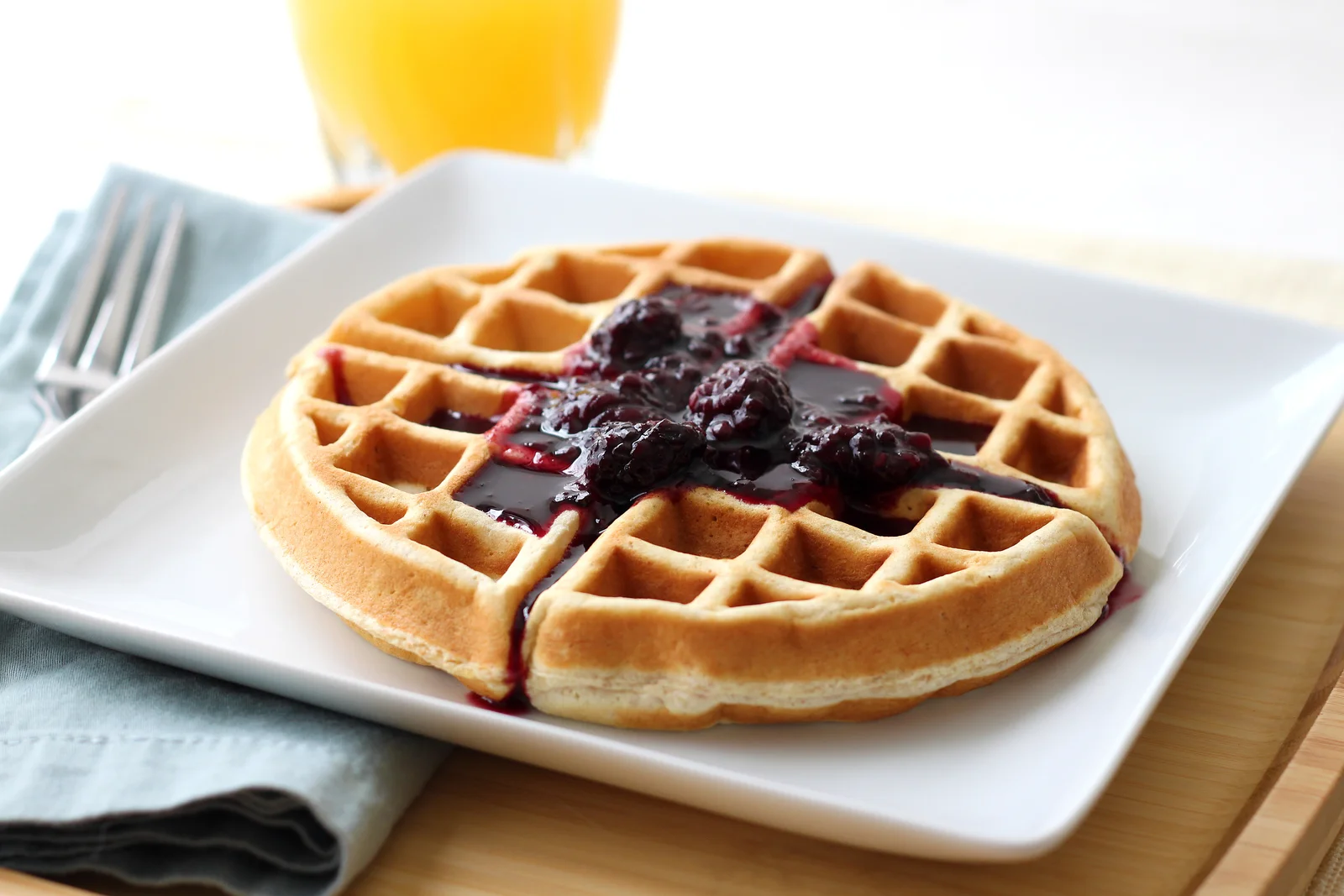 Waffles(格子松饼): 一凹一凸格子状的烤饼,和糖浆或炸鸡都很配。