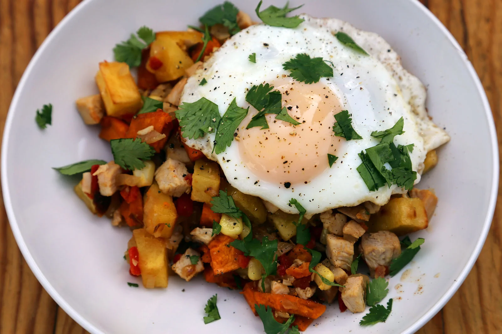 Hash(哈希): 由碎肉、马铃薯和配料调料混在一起的一道家常风味美式菜,上面加个 Sunny Side Up Egg 更美味。