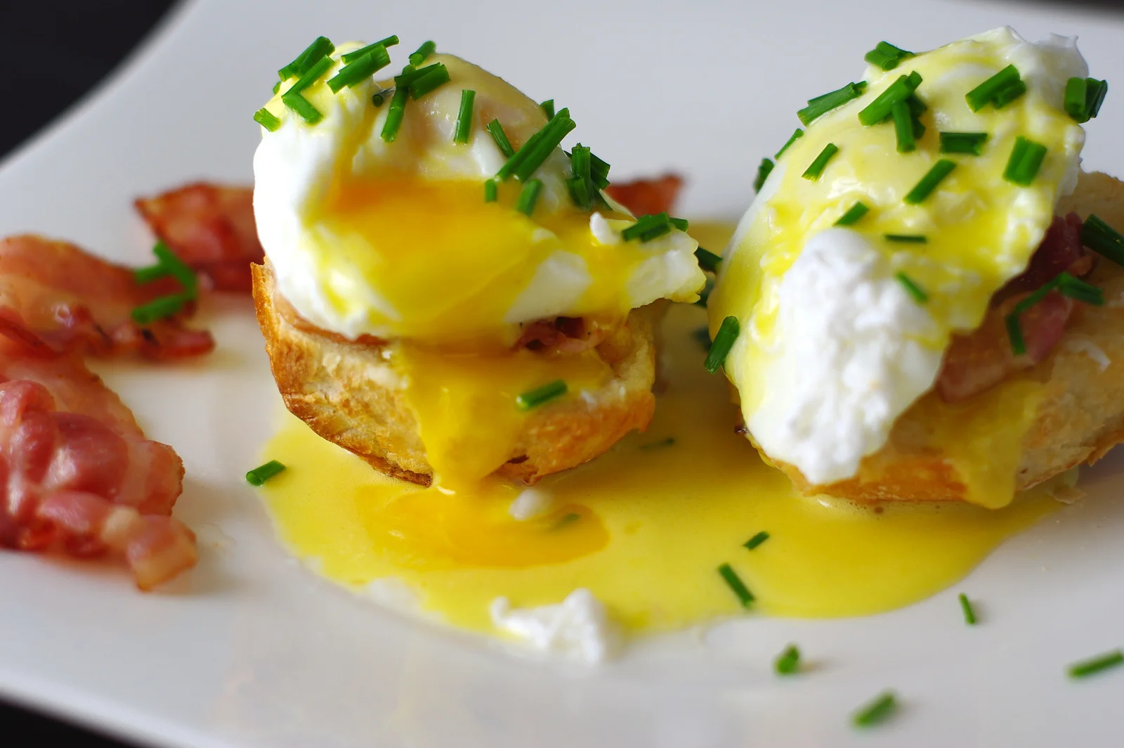 Eggs Benedict(班尼蛋):马芬面包+水波蛋+超难做的荷兰酱汁的无敌搭配。
