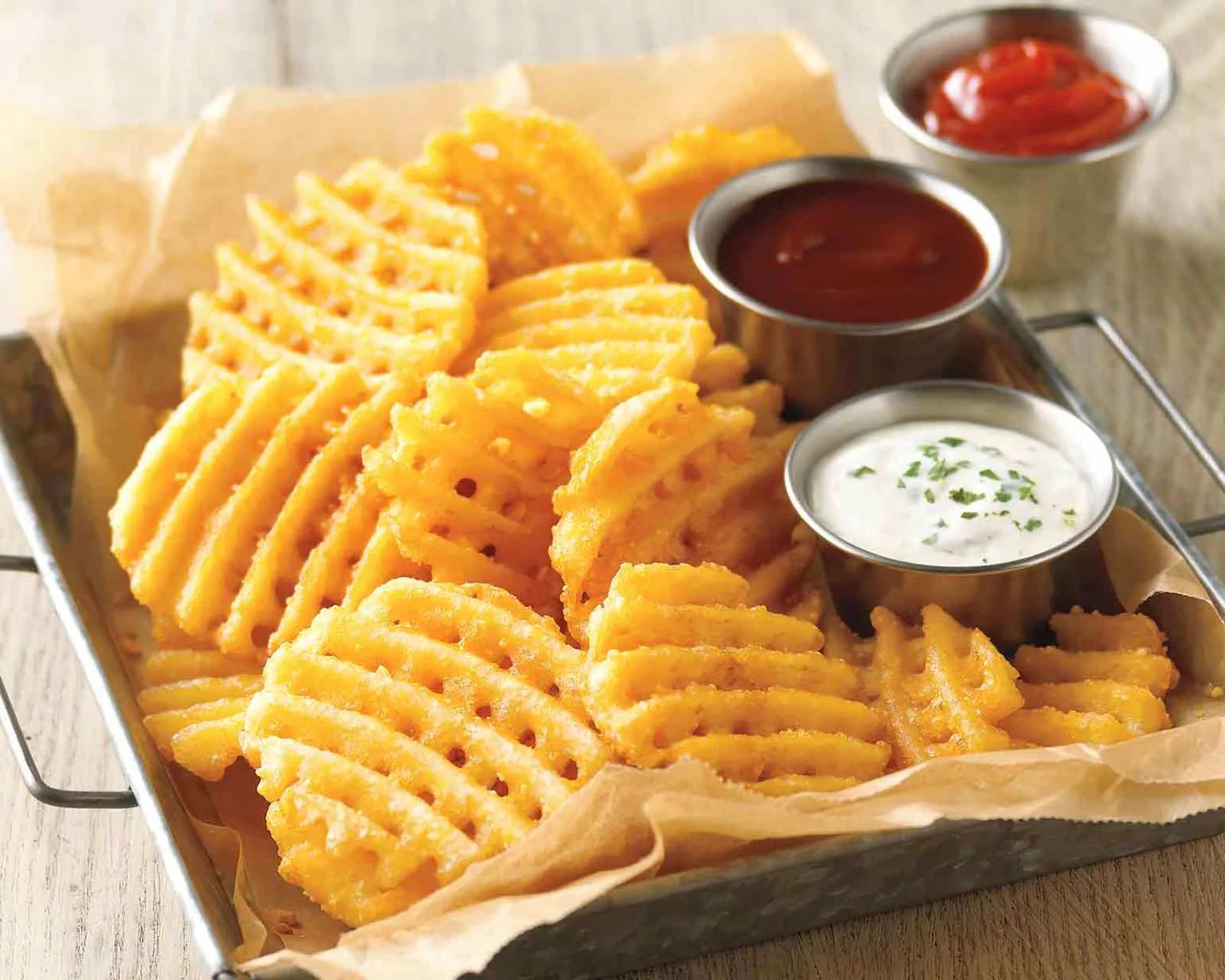 Waffle Fries: 华夫薯条,外形像格子松饼,有点像薯片。