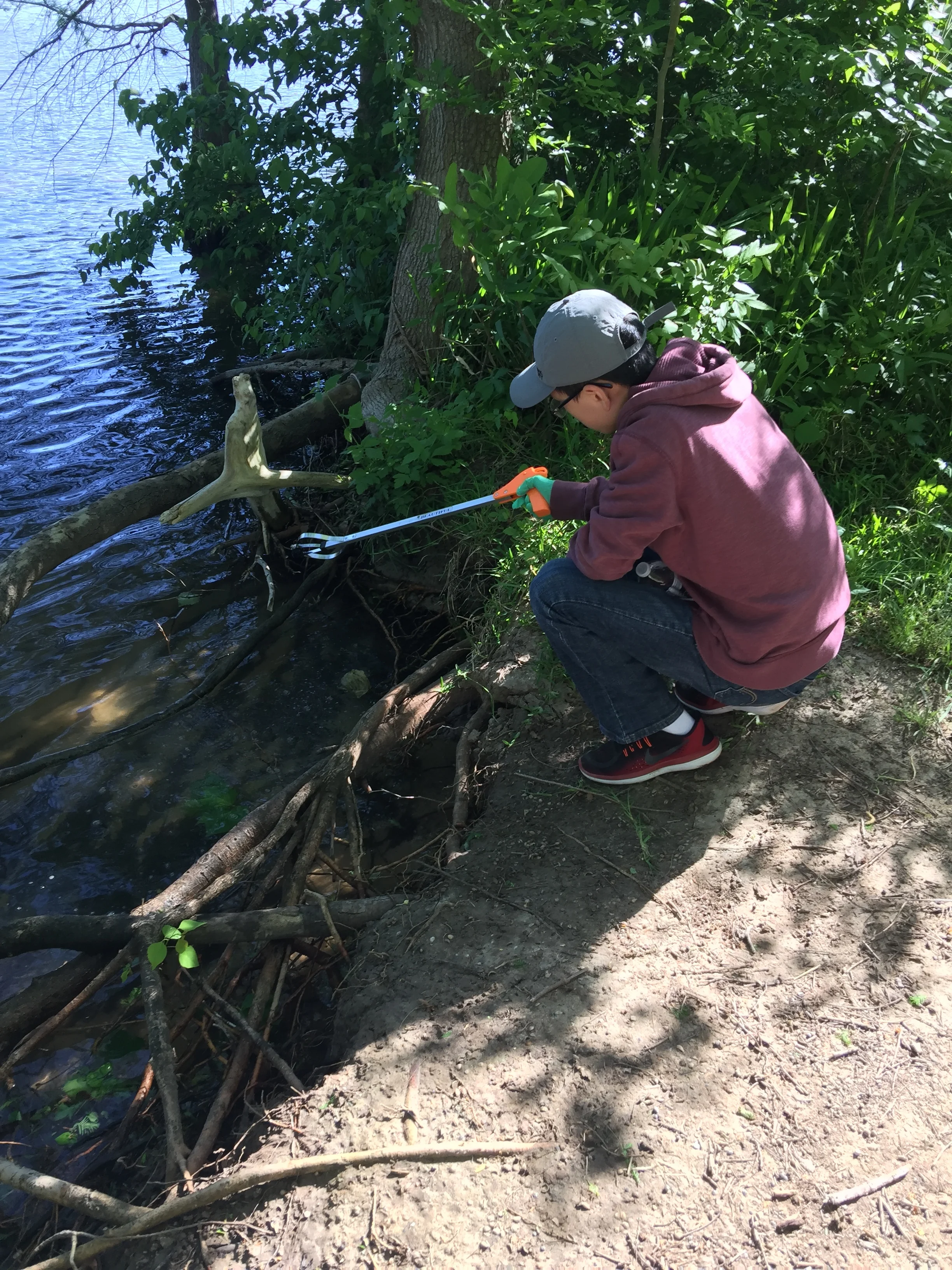 上午9:30,二十多个家庭兵分两路,从不同的步行小道开始清理行人平时丢弃的垃圾。值得称赞的是参与的孩子们人数远远超过成人,认真的劲头也更胜一筹。大家带着手套,拿着专门的捡垃圾工具,分别归纳为可回收和不可回收两种垃圾。志愿者们一路捡起了饮料瓶、烟头、易拉罐、塑料袋等形形色色的废弃品。到达湖边,远望景色宜人,近看脚边,认真的孩子们依然发现了废弃的网球、遗失的鞋垫、破旧的衣物,大家甚至齐心协力,采取猴子捞月亮的接力方式,把湖里的可见垃圾也清理干净。从湖边回程的路上,大家一边拾漏补遗,一边不忘享受春意盎然,或援树干攀爬,或沿小径穿梭,或辨路边奇花。不时遇到休闲锻炼的路人,对清理活动由衷表示赞赏。