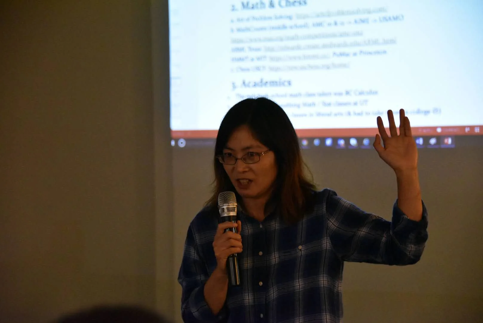 座谈会先由Lisa Feng女士分享教育界/研究界对‘天才教育’的认知和看法。Lisa女士原是公立学校特殊教育老师,现任职于UT Austin教育学院研究中心,主要研究方向是”学习障碍和行为”(Learning disability and behavior disorder), 包含学生有”阅读/数学学习障碍”(Reading/math difficulties), “多动症/亚斯博格症”(ADHD/Asperger)和”高功能自闭症”(High functioning Autism).