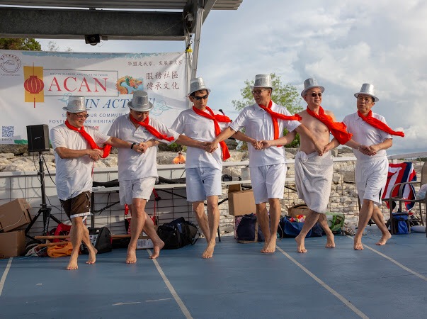 这次活动的总指挥是许瑾女士,她带着一班理事和义工们几个月前就为这次活动开始了策划和准备工作。一到船上,她就和几个义工马不停蹄的开始了夏威夷风情的背景布置设计:食物组由Wendy和Angela 带队,在船的另一头忙得热火朝天。在此,特别感谢路客餐厅的陈老板对华盟的活动一如既往的支持,为了给大家减轻带食物上游船的负担,他精心准备了四种套餐供大家选择,其中20%还捐赠给了华盟,作为这次游船经费的补贴;吴晓丽和先生陈共带来了正宗的四川凉粉和烤肉串。春平,桂珍,虹燕带来了金灿灿的美味面条,食欲大增的烤大排,口齿留香的烤鸡翅和满满一大碗的素什锦。王利想得甚是周到,不但带来了深受大家欢迎的寿司卷,居然还带来了粽子。正如她本人所说,刚好父亲节和端午节一起过了。大家带来的这些美食基本上在几分钟之内全部空盘,而我就是那个为大家瓜分美食的“黑手”。