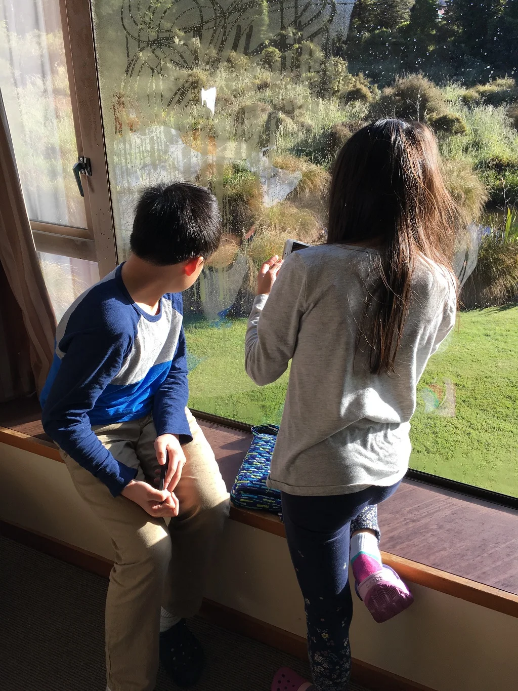 旁边的停车场有两只新西兰啄羊鹦鹉(Kea),我的车门没有关,它们差点就钻进车里了。它们应该是被孩子们掉在车里的零食渣吸引住了。这种鹦鹉也只有新西兰有,据说野生的只剩下5000只,属于濒危动物。鹦鹉被游人们围观照相仍然不忘搔首弄姿,颇具明星范!