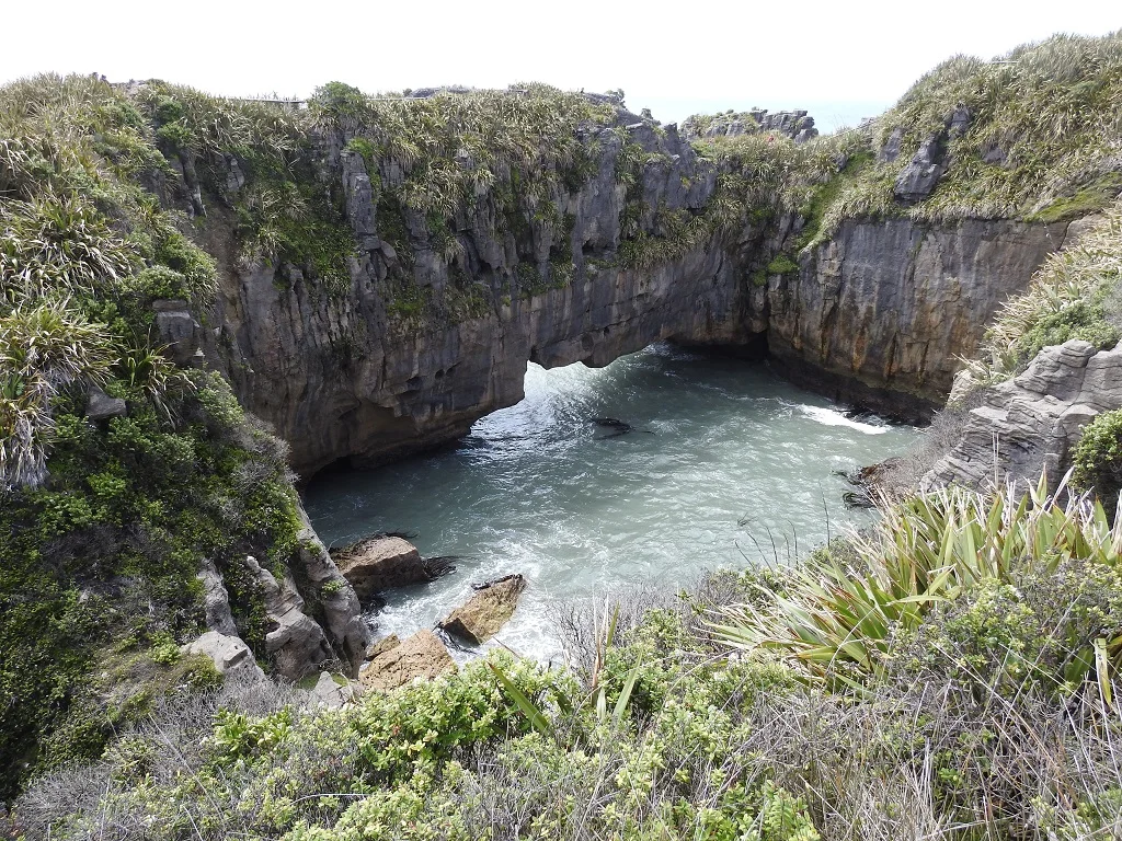 在Pancake Rock Blowhole我们又一次领略到大自然的鬼斧神工,看到了酷似煎饼的岩石。数千万年前,大量生物和沙子被掩埋在海底,由于时间不同,出现了层层叠起的形态。海底的火山爆发和地震把这些岩石推到地表。