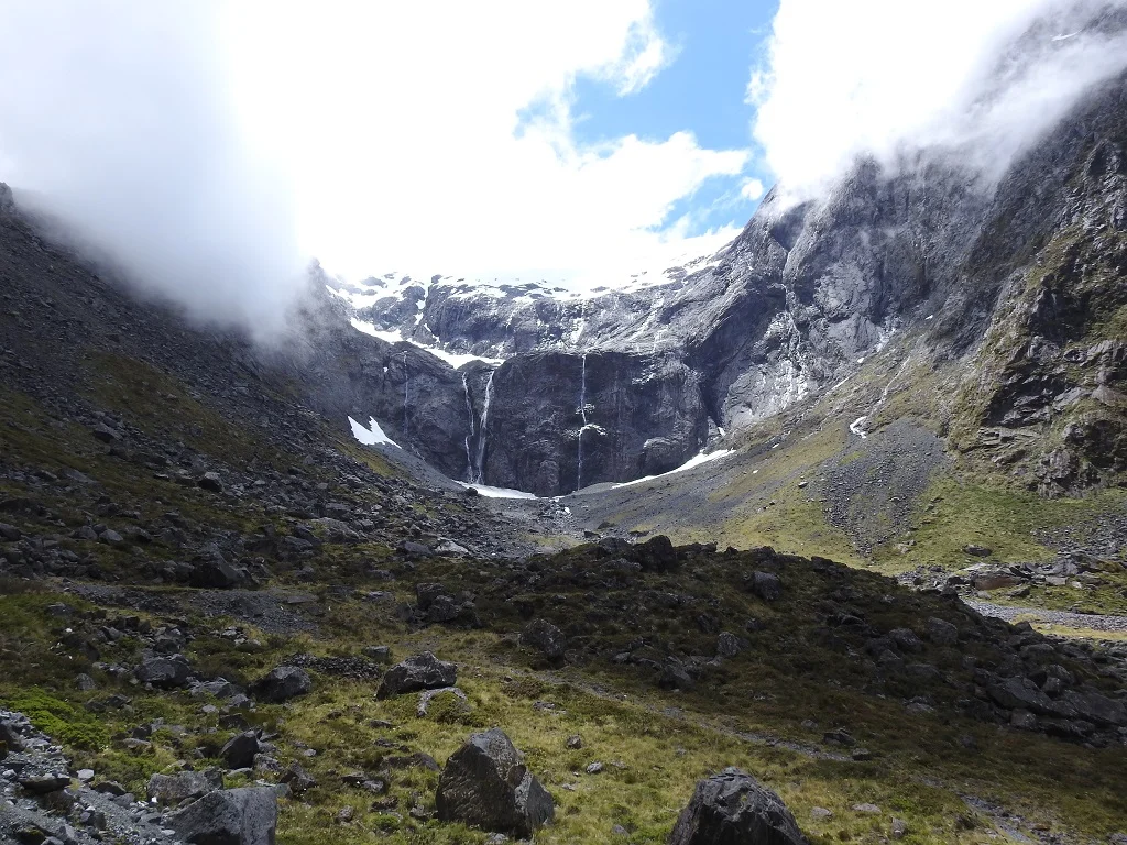 The Divide边的Routeburn Track真是一条绝美的步道,来回三个半小时,有点陡峭,上山稍微费点功夫,但是景色却是渐入佳境,快到Key Summit以后保证你会完全忘记腿酸背痛,因为眼前的一切像是在仙境一般。好几座皑皑雪山就在眼前,半山腰还飘着时隐时现白丝带一样的云雾。
