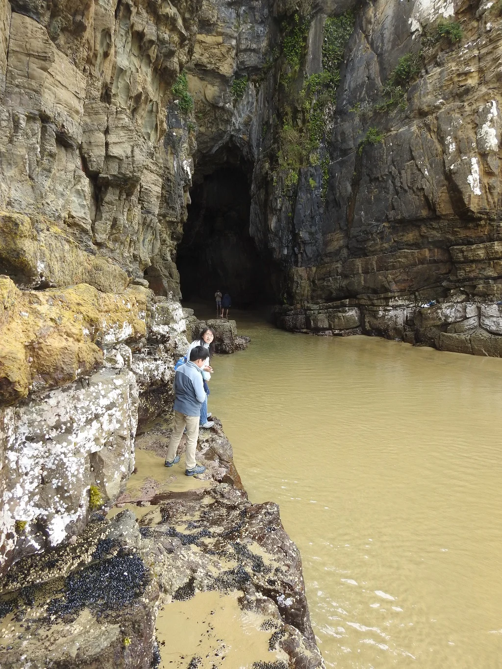 看着海水疯狂灌进来追着游人跑挺刺激的。我们玩到脚都快冻麻木了才出来。