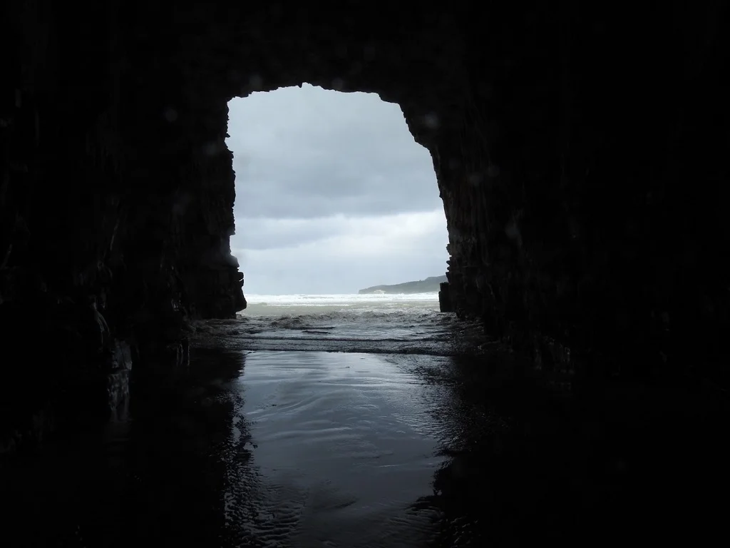 Cathedral Cave一天只有退潮的时候准人进去,涨潮时洞口会被海水淹掉。所以来这里玩必须先查当地潮汐报告,掌握好参观时间。它是个海边很大的山洞,游人需脱掉鞋子,光着脚卷起裤腿才有可能进去。