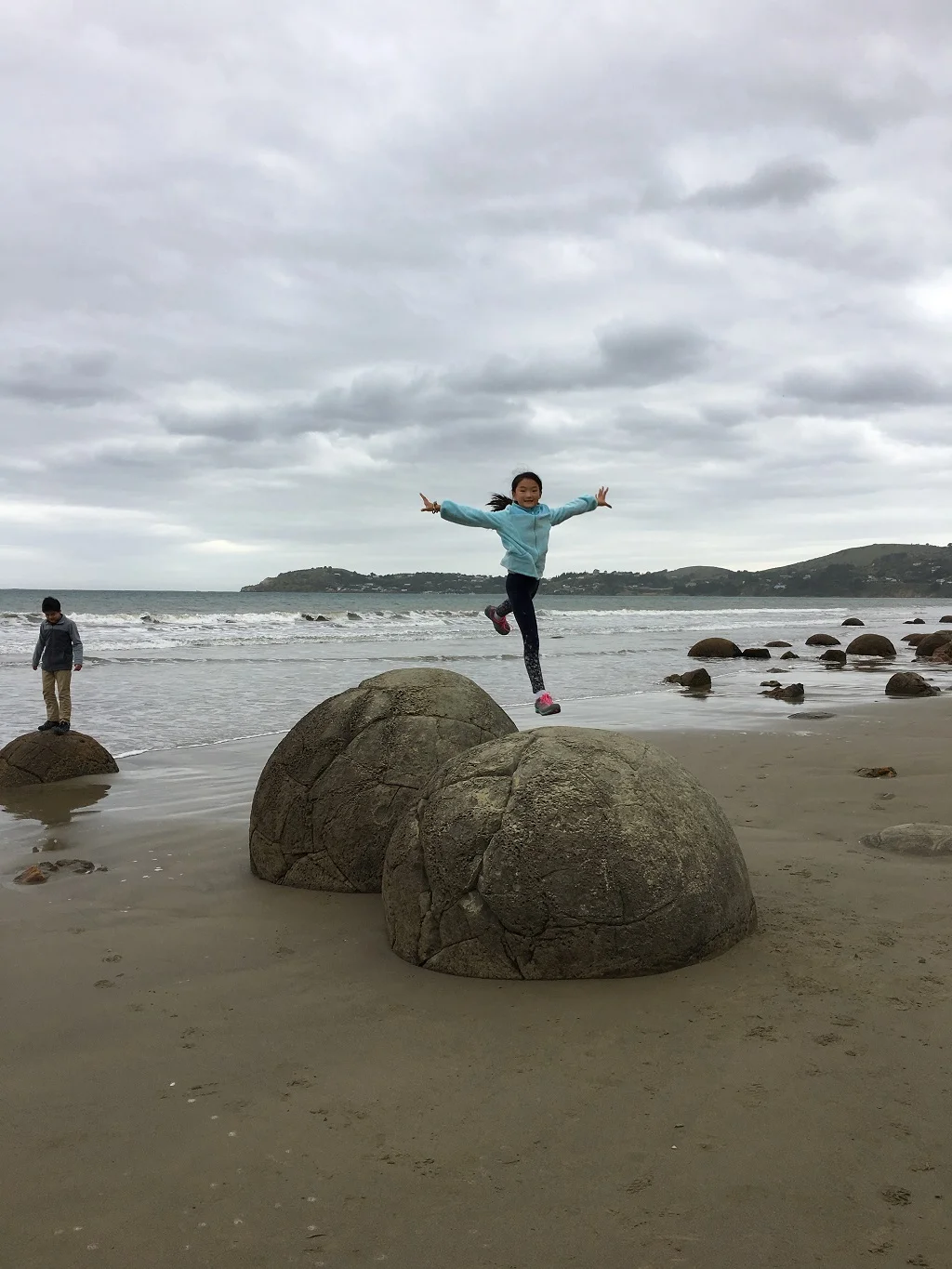 而Moeraki Boulders像是岁月下的蛋,一个一个地安放在平坦的沙滩上。