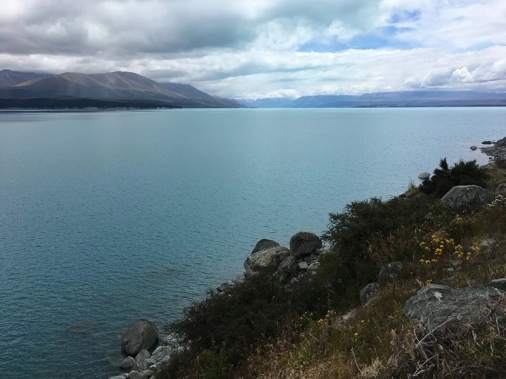 今天我们还看到了世界上最美的两个湖,Pukaki和Tekapo,那水碧蓝得不像话,像假的一样,瓜瓜戏说里面肯定有人放了硫酸铜。其实颜色秘密仅仅是因为湖水乃冰川融水,细小的粉粒造成蓝光反射。湖的尽头处Mt Cook(库克山)是新西兰的最高峰,此时仍然白雪皑皑。话说当年库克船长世界各地探险,到处都有以他名字命名的山峰,可是他本人却死于非命一有传说是被毛利土人给吃了。