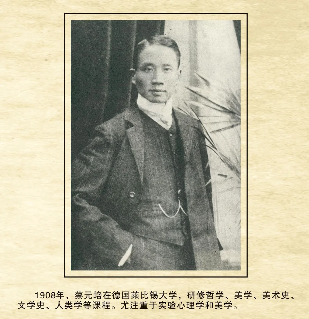 他在四十一歲才開始到德國去讀書,他是從中國傳統的博學風氣裏面陶鎔出來的一個人, 對學問的興趣非常廣泛,凡哲學, 文學, 文明史,人類學, 實驗心理學, 美學, …… 他都去聽講, 去做實驗。從這一次起, 他前後三次去德, 兩次去法, 而花在國外的時間,凡十三年。他在留學的時候, 沒有忘記國內的事業; 做事的時候也決不肯拋開學問。他的著作和譯述雖在十種以上, 但他沒有集中精力,寫出一種較大的東西, 環境限之, 事務擾之, 從他的性格上說, 這要算是他個人的一種損失,可是也正因為他是一面學, 一面教; 一面做事, 一面讀書, 其所留給一般後輩的影響,乃決不在梁啟超, 嚴復, 王國維諸人之下。