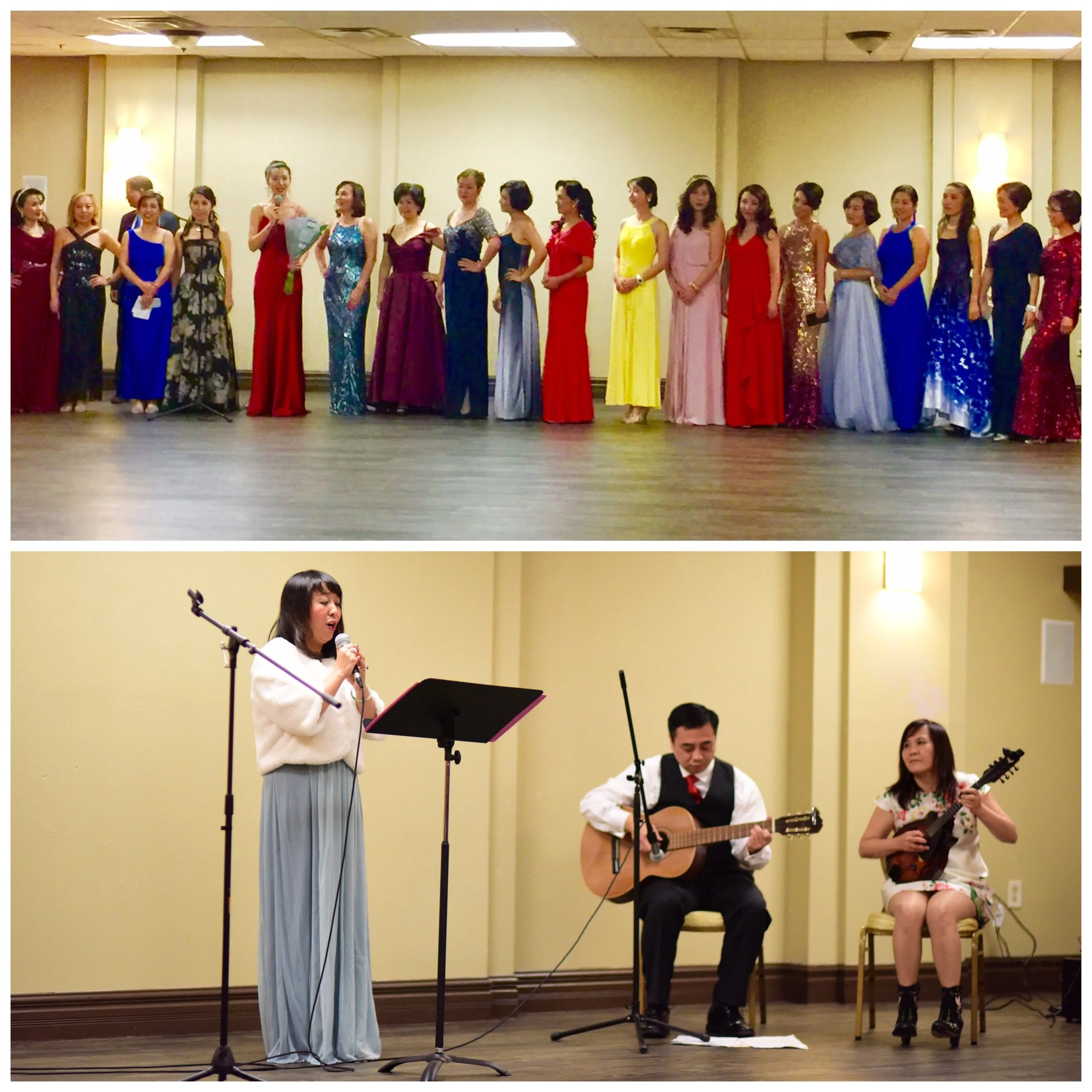 接下来是新加入华盟的袁桢老师的独唱表演。袁桢老师是功底深厚的专业歌唱家。她在奥城为很多音乐爱好者提供培训辅导,培养了不少后起之秀。此刻,袁桢老师在蔡茹虹的曼陀玲和赵勇的吉他的伴奏下演唱了著名电影《教父》插曲“Speaking Softly,Love” 和圣诞节传统歌曲“Silent Night”。三位艺术家的精彩表演让所有人陶醉,赢得了满堂喝彩。