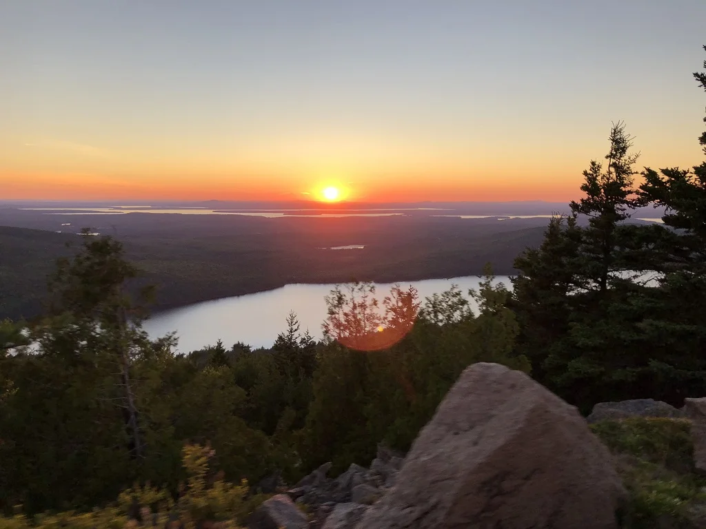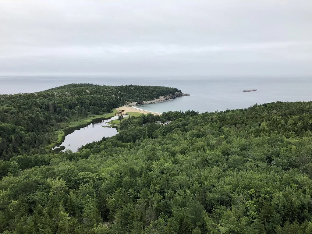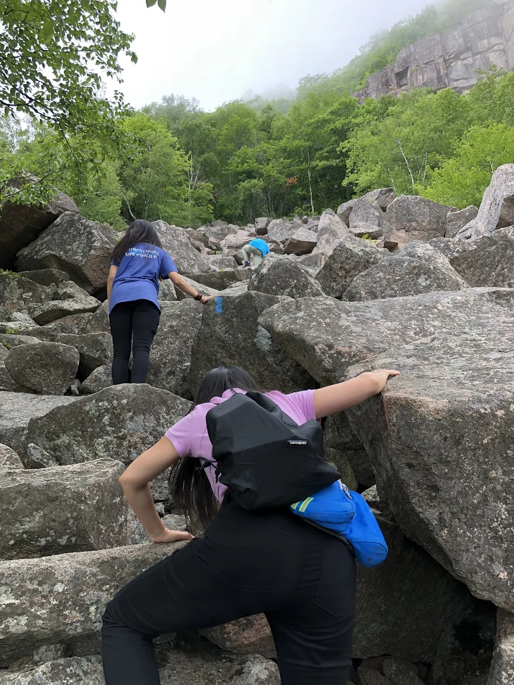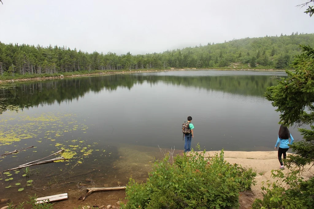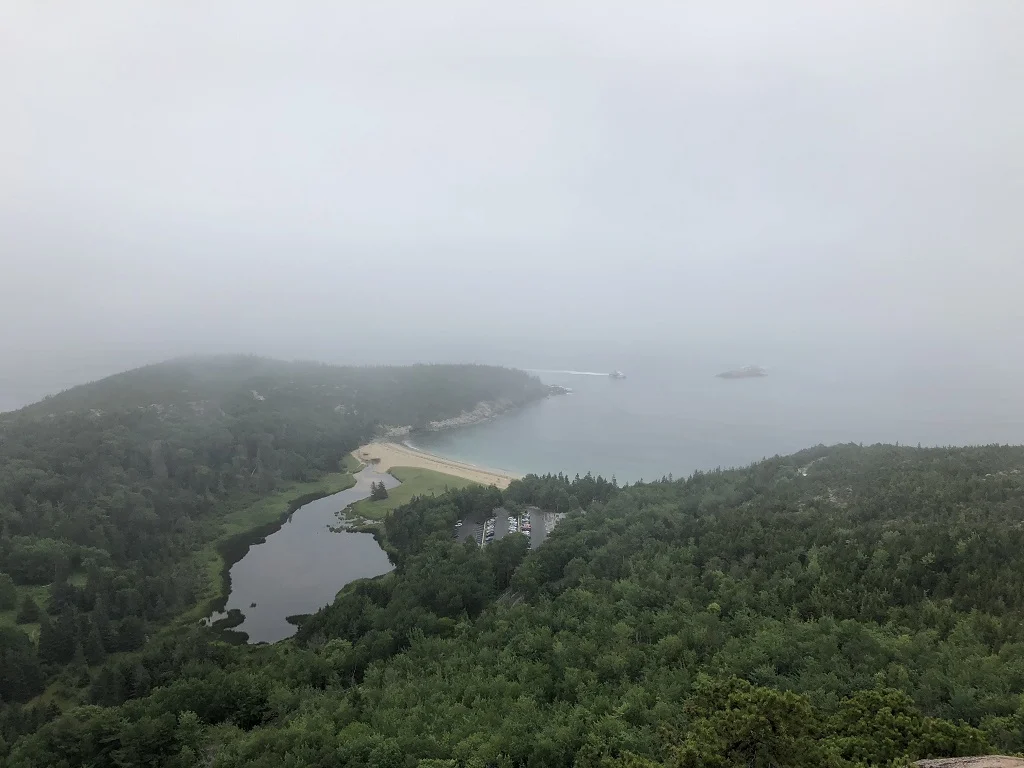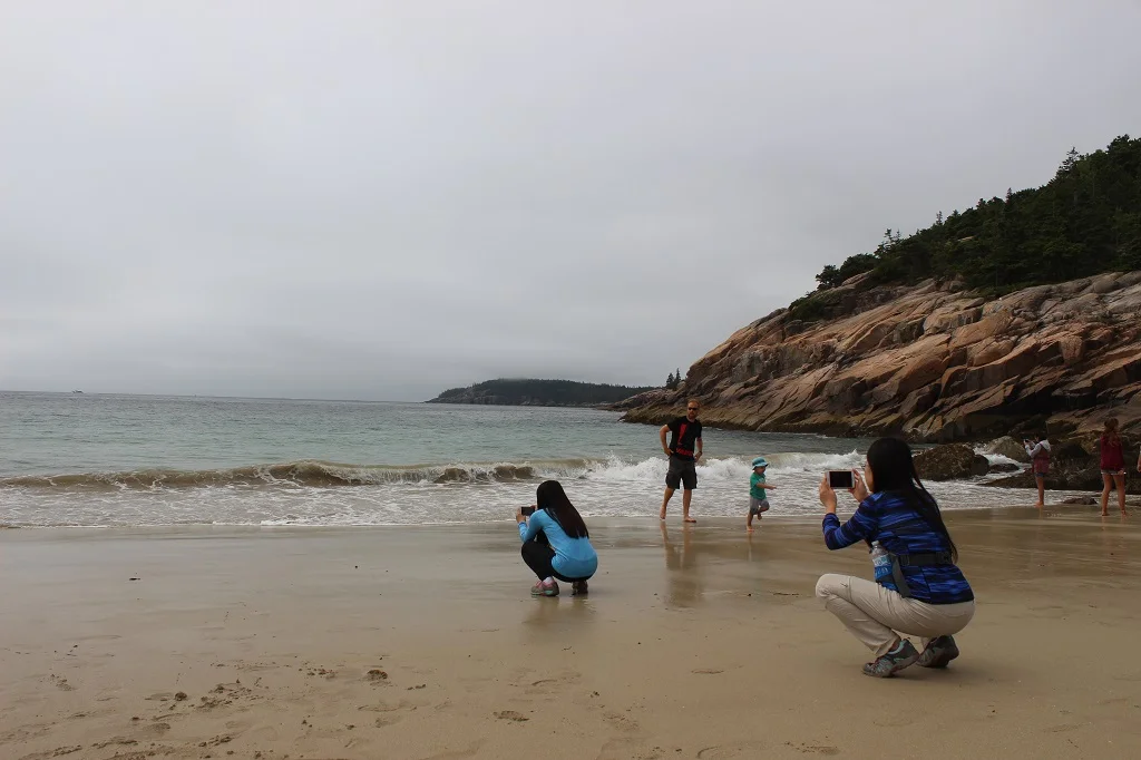 路口有个警示牌: “Think twice before climbing up the trail –the steepest and most challenging hiking trail in Arcadia.”我怀疑跟在我们后面的那家人没有读这个牌子。一路上就听见他们家的那个17,8岁的小伙子贴着石璧”Oh, My God…My God!”地叫,“Mommy you owe us a big lunch for bringing us here!”他们家的另一个小男孩吓得一直哭,但是他们没有退路只能硬着头皮上,因为这条步道不准逆行。步道的确很危险,大部分地段要手脚并用,有的悬崖是近乎垂直的石壁,要沿着铁梯才能爬上去,对有恐高症的人来说绝对是一场残忍的折磨…况且石缝里还可能有蛇埋伏..