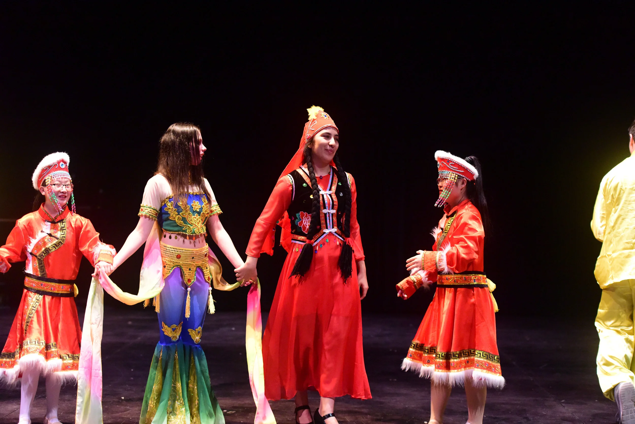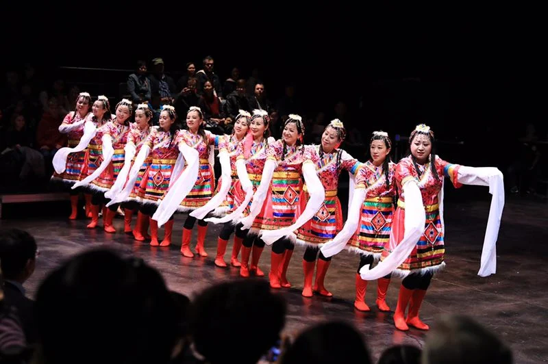 华韵舞蹈团表演的中国民族舞蹈表达了人们庆祝中国春节的欢快喜庆场面。